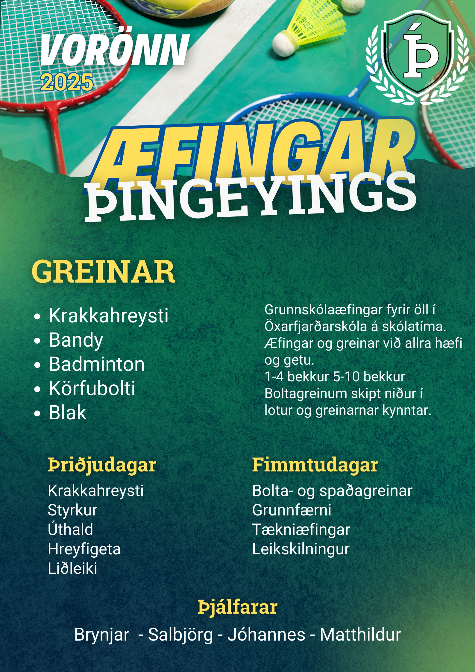 Þjálfarar félagsins bjóða uppá íþróttagreinar sem henta öllum og getustigi.